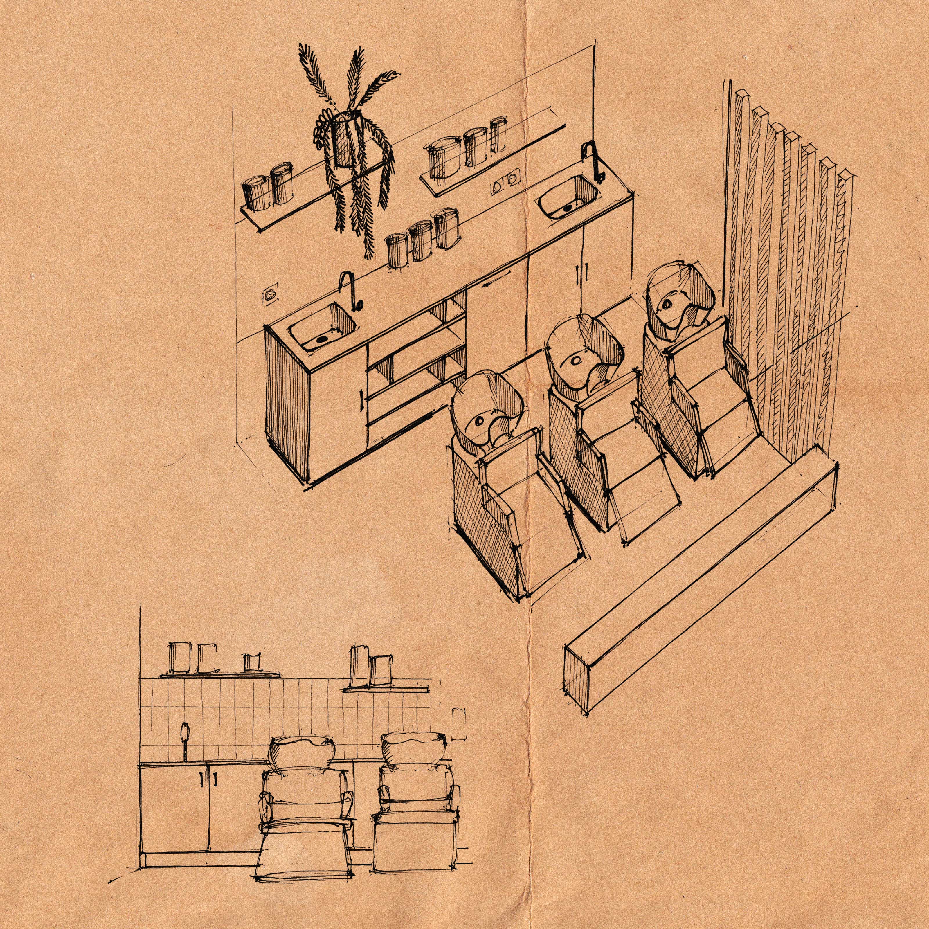 Les autres éléments indispensables tels que les bacs à shampoing, la salle d’attente ou encore l’espace d’encaissement gravitent autour de ces trois îlots de travail.